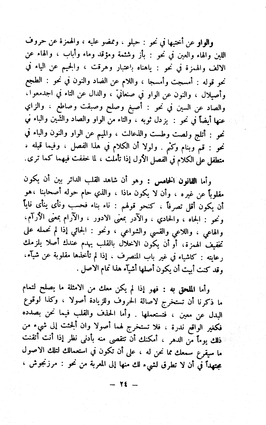 اعلم أن الطريق على هذه الاعتبارات على نحو الطريق على الاعتبارات الأول من انتزاع كلي عن جزئيات وسلوكه هو أن تعمد لاستقراء الهيئات فيما يتناوله الاشتقاق متطلباً بين متناسبتها رد البعض على البعض عن تأمل تتفتح له أكمام المناسبات المستوجبة للرعاية هناك مصروف الاجتهاد في شأن الرد على اعتبار أبلغ ما يمكن من التدريج فيه فاعلاً ذلك عن كمال التنبه لمجاريه وشواهده وما يضاد ذلك ضابطاً إياها كل الضبط في أصول تستنبطها وقوانين وكأني بك وقد ألفت فيما سبق أن أكون النائب عنك في مظان الاستقراء ومداحض التأمل تنزع ها هنا على مألوفك فاستمع لما يتلى عليك وبالله التوفيق. ولنقدم أمام الخوض فيما نحن له عدة اصطلاحات لأصحابنا رحمهم الله، عسى أن يستعان بها على شيء من الاختصار في أثناء مساق الحديث، وهي أن الاسم أو الفعل إذا لم يكن في حروفه الأصول معتلاً سمي صحيحاً وسالماً، وإذا كان بخلافه سمي معتلا، ثم إذا كان معتل الفاء