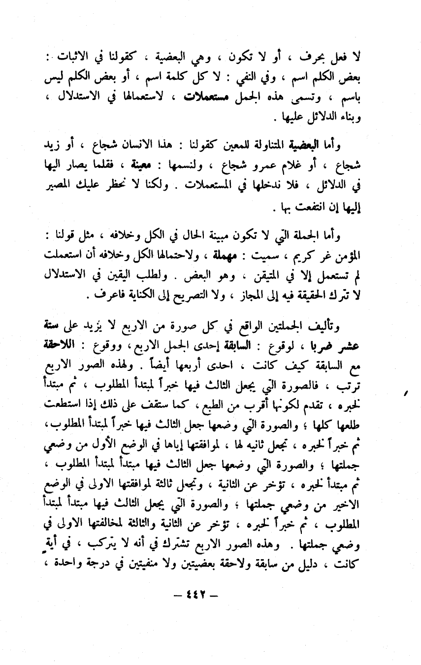 واعلم أن خلاصة هذه الصور الأربع وضروب تأليفاتها التسعة عشر راجعة على حرف واحد وهو أن المبتدأ متى لم يكن معلوما من نفسه مجامعته للخبر فيثبت أو مفارقته له فينفي يطلب ثالث بينهما يجمعهما أو يفرقهما، ثم الحاكم في جمع الثالث أو تفريقه أحكام أصلين: أحدهما أن لزوم الشيء لكل آخر أو بعضه ينعكس بعضيا وأن عناد الشيء لكل آخر ينعكس كليا فملزوم اللازم مستلزم لبعض أفراد اللازم بالقطع استلزاما من الجانبين استواء وانعكاسا. وثانيهما المستلزم لا ينفك عن المستلزم فإن كان المستلزم ثبوت شيئين اجتمعا وإن كان ثبوت واحد وانتفاء آخر تفرقا.