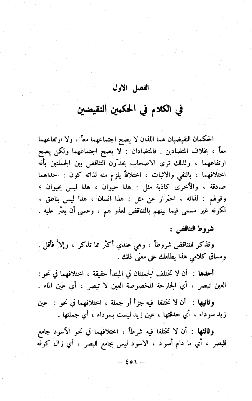 ونحن نذكر حاصل ما فيه عند الأصحاب على اختلاف آرائهم فنقول: الإمكان ينقسم على أربعة أقسام: عام وخاص وأخص وأخص الأخص، فالعام هو ما بنفي ضرورة واحدة فحسب، إما ضرورة العدم وإما ضرورة الوجود فينفي المتصف به صالحا لضرورة الوجود لما هو أو لضرورة العدم لما هو والخاص هو ما ينفي الضرورتين فينفي المتصف به صالحا لضرورة من الضرورات لكن من قبيل السبغة دون قبيل اللاحقة وأخص الأخص هو ما ينفي ضرورات القبيلتين جمع فلا ينفي المتصف به صالحا لا لضرورة سابقة ولا لضرورة لاحقة لكن في أخص الأخص كلام فبعضهم يحققه في الحال وفي الاستقبال وبعضهم يأباه في الحال دون الاستقبال، وبعضهم يأبى تحققه أصلا وهو الأشبه لاستتباعه في الحال ضرورة الوجود أو العدم اللاحقة، وفي الاستقبال ضرورة العدم اللاحقة فتأمله فإني أرى عالما من الناس يتعجبون من هذا القول وأنا أتعجب من تعجبهم ويوردون في إبطال هذا القول حججا يكفي في إبطالها مجرد تلخيص محل النزاع، وأما إثباته في الاستقبال فلا وجه له عندي سوى تخصيص الضرورة اللاحقة بالوجود دون العدم بوساطة العناية لا غير تشبثا فيها بأن الضرورة اللاحقة متى ذكرت ذكرت مع الوجود.
