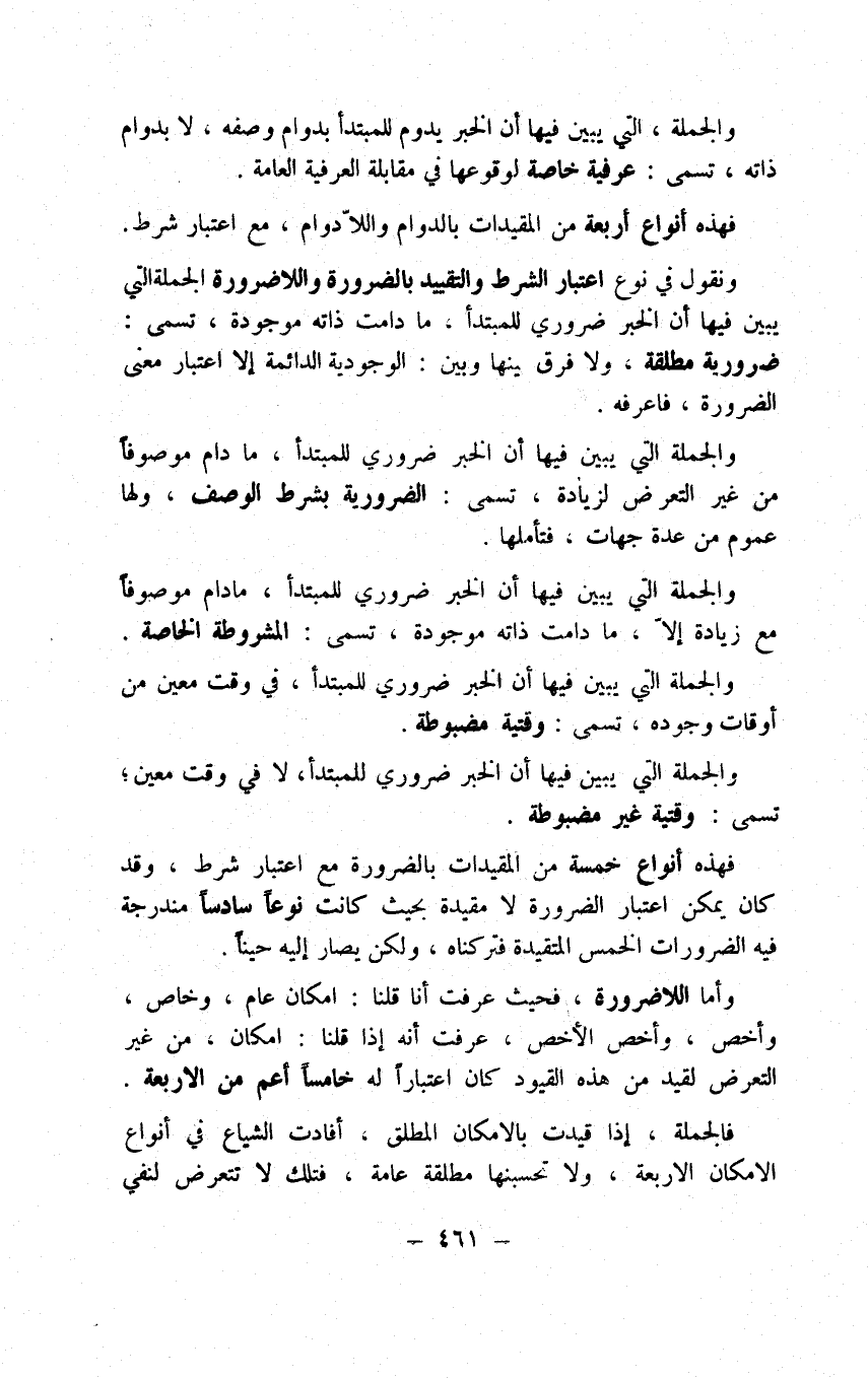 معنى الضاحك نازلا منزله لا إنسان بإنسان ضاحك ويكون حاصل معنى الكلام في الوجود إنسان لا إنسان ضاحك مستفادا منه عقلا في الوجود إنسان بوصف الإطلاق لا إنسان ضاحك بالتقييد ودعوى امتناع عكس هذا دعوى غير محصل لأنه متى صح ان يقال في الوجود إنسان بوصف الإطلاق لا إنسان يوصف بوصف الإطلاق، وبيان وجه التغليط في الصورة الثانية هو أن إذا قلنا الجهة في الأصل والعكس لا تتغير كان المراد أن الجهة متى اتصفت عند العقل بوجوب أو امتناع أو ضرورة في موضع أصلا كان ذلك الموضع أو عكسا أفاد اتصافها في أيهما كان عنده شيء من ذلك اتصافها به في صاحبه مستويان في العلم باشتراكهما في تلك الجهة فإذا علم العقل أن كل ضاحك يجب أن يكون إنسانا أفاده ذلك العلم أن إنسانا ما بحسب تقدير الضاحك في القضية السالفة إن ذهنيا وإن خارجيا يجب أن يكون ضاحكا يتبين ذلك أن العقل إنما يوجب كون الضاحك إنسانا من حيث اعتبار كونه خاصا يكون مفهومه مفهوما مجموعا من صفة مخصوصة وموصوف مخصوص وتحقق المجموع بدون ما هو جزء له ممتنع فيوجب مع الضاحك متى فرض تحقق له ذهني أو خارجي تحققا لإنسان ذهنيا أو خارجيا ومتى فرض العقل للضاحك تحققا كيف كان أفاده ذلك أن إنسانا ما يجب أن يكون ضاحكا إن من جزاء المتحقق باعتبار كونه جزءا من المتحقق يستلزم في تحققه ذلك امتناع الانفكاك عن الجزء لكونه مأخوذا معه في اعتبار التحقق وإنسان ما جزء من الضاحك المفروض تحققه فيجب امتناع تحققه بدون ما يقوم المجموع الذي هو مفهوم الضاحك المتركب من الصفة والموصوف لكونه مأخوذا مع الضاحك في تحققه: أعني تحقق الضاحك فالجهة كما ترى تتحد عند العقل في قضيتين وكل ضاحك إنسان بالوجوب إنسان ما أو بعض الأناسي ضاحك بالوجوب،