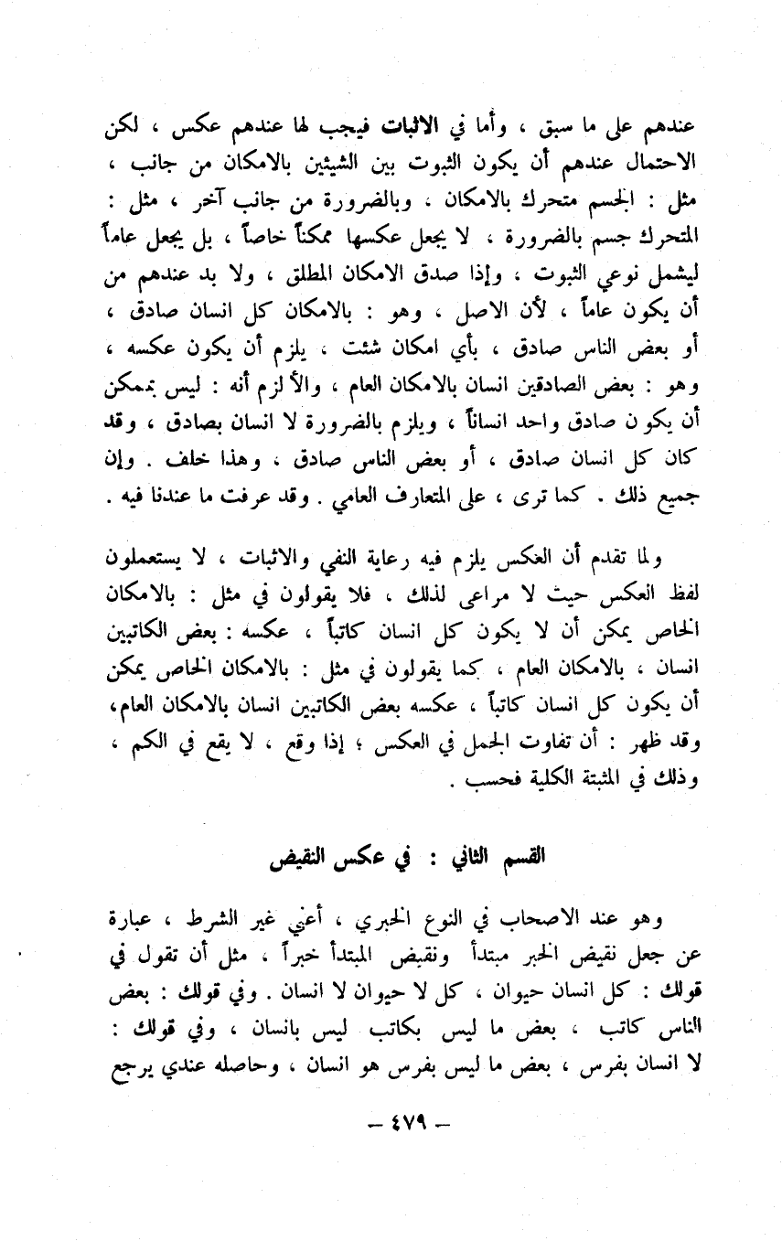 تحصيل المطالب بطرق معلومة مضبوطة الأسماء وقد انضم على ذلك ما اخترنا نحن في عكوس الجمل من بقاء جهاتها محفوظة على ما سبق تقرير ذلك ونحن نسوق الكلام على الآخر على أقرب الوجوه في الضبط أمكن ولكن في البين واقع يورث تشويشا فلابد من تداركه وهو أن بين المتقدمين والمتأخرين في الامتزاجات تفاوتا في الحكم يقدح في ضبط الكلام في مواضع ويشوش الأمر على المتعاطين فالرأي أن نطلعك على السبب في وقوع التفاوت ثم نصرح لك بما نحن فاعلوه هناك من اختيار الأقرب على الضبط والعمل بالأليق.