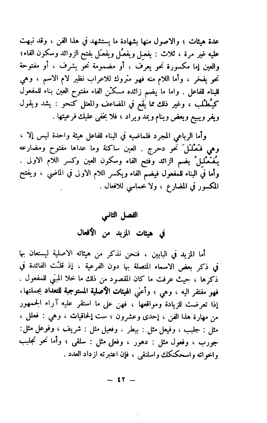 استفعال في غير الأجوف وفيه استفالة فتنبه ومصدر افعوعل وافعول افعيعال وافعوال ومصدر إفعال وافعل افعيلال وافعلال ومصدر تفعلل تفعلل ومصدر افعنلل وافعلل افعنلال وافعلال وكل همزة تراها في أوائل هذه المصادر إلا مصدر افعل للوصل ولا مدخل لها من الأسماء إلا في هذه وفي عشرة سواها وهي: اسم واست وابن وابنم واثنان واثنتان وامرؤ وامرأة وايم الله وايمن الله وإذا أريدت المرة بالمصدر صيغ على فعلة بفتح الفاء وسكون العين كما يصاغ على فعلة بكسر الفاء إذا أريدت الحالة قياسا متلئبا في مجرد الثلاثي وفي ما سوى المجرد يؤنث المصدر بالتاء إن لم يكن مؤنثا نحو إكرامة ودحراجة وإلا وصف نحو إقامة واحدة ودحرجة واحدة وما يوجد في المصادر على زنة التفعال كالتجوال والفعيلى كالقتيتى فللمبالغة وتكثير الفعل واستعمال اسم المفعول في غير الثلاثي المجرد استعمال المصدر كثير مستفيض.