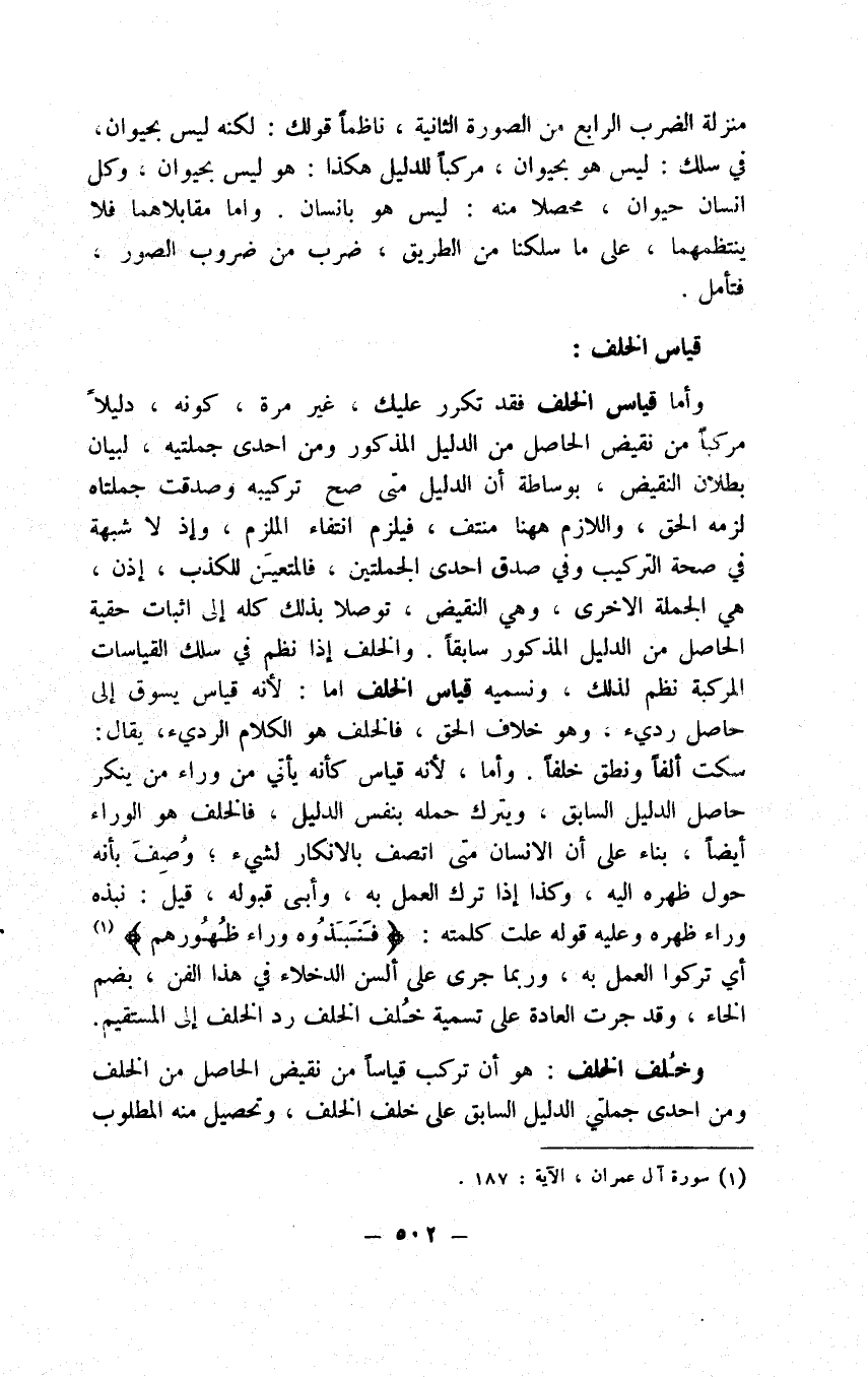 لا أوادي. أراد إن كان الآدي يعد أحدا فلا أحد فيه بها إلا هو، وكذا في الفرعين الآخرين فتأملهما فقد اطلعت على جهات البلاغات فلا تقل اضرب قوما إلا عمراً وإلا لإظهار كمال الإبقاء على عمرو، فإن المبقي على الشيء ينزل البعيد من احتمال ضرره منزلة أقربها، أو لوجه آخر مناسب مستلزم لإيجاب الدخول في باب البلاغة، ولا تنس قولي في باب البلاغة، وكذا لا تقل لفلان عليّ ألف إلا تسعمائة وتسعة وتسعين إلا إذا أردت تنزل ذلك الواحد منزلة الألف لجهة من الجهات الخطابية وقد عرفتها ولامتناع كون الشيء غير نفسه لا تصحح استثناء الكل من الكل فلا تقل لفلان عليّ ثلاثة دراهم إلا ثلاثة، ولكن أردف الثاني ما يخرجه