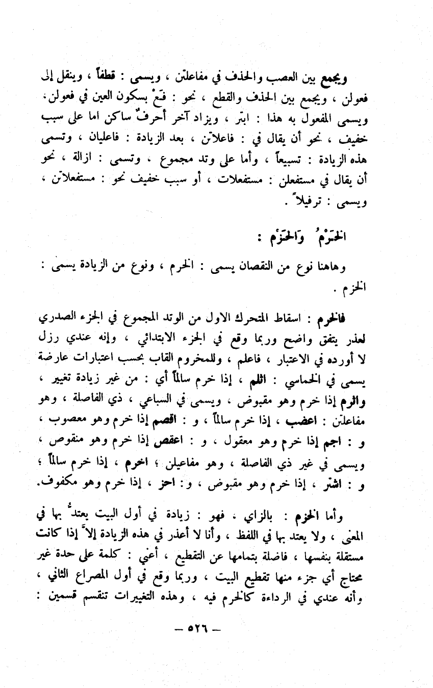وفي قصيدة عبيد بن الأبرص وهي أفقر من أهله ملحوب كثير من هذا القبيل، وهذه القصيدة عندي من عجائب الدنيا في اختلافها في الوزن والأولى فيها أن تلحق بالخطب كما هو رأي كثير من الفضلاء، بيت الضرب الأول من المثمن:
