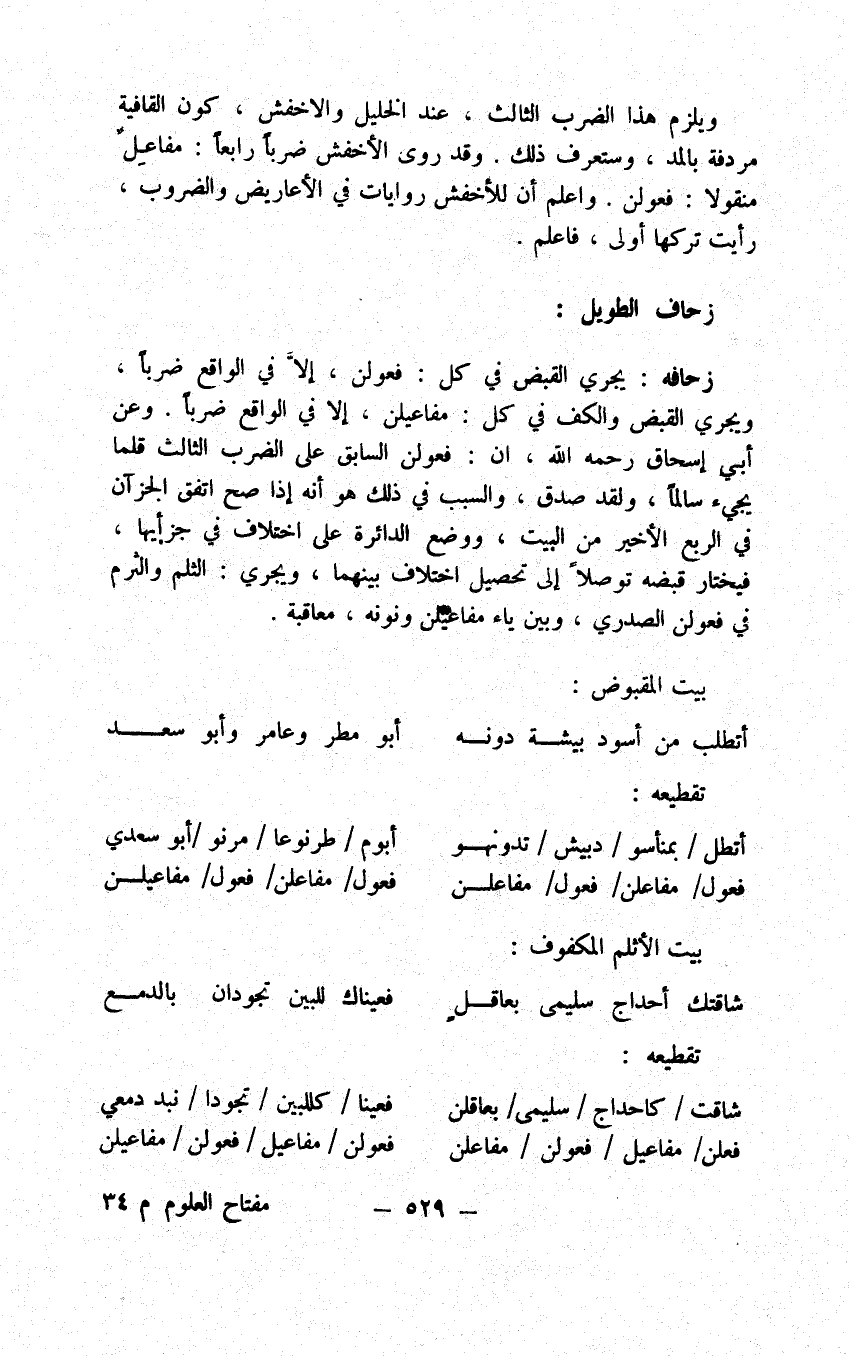 تقطيعه: مستفعلن فاعلن فعولن مرتين، وفعولن هنا في العروض لما أشبه عروض المتقارب من مسدسه حذفه من قال: