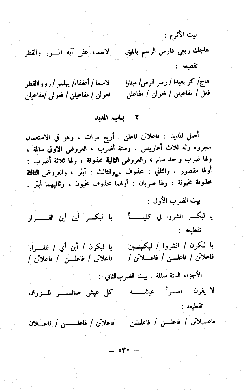 تقطيعه: مفاعلتن أربع مرات، بيت الضرب الثاني منه: