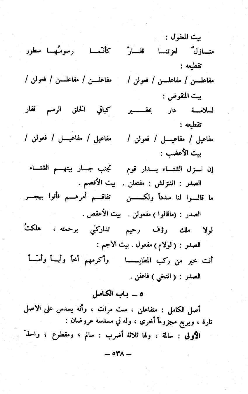 تقطيعه: مفاعلن ستا، بيت المطوى: