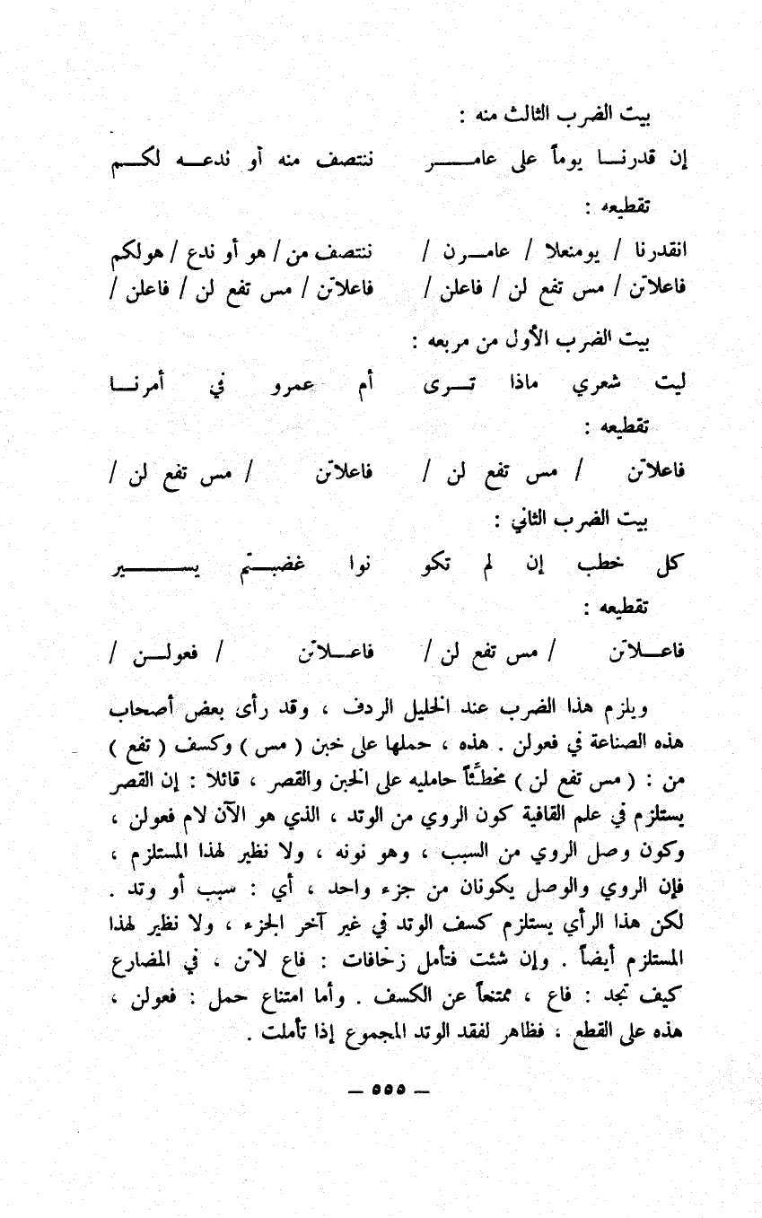 وهذه الأوزان هي التي عليها مدار أشعار العرب بحكم الاستقراء لا تجد لهم وزنا يشذ عنها اللهم إلا نادرا وأكثر الاستقراآت كذلك لا تخلو عن شذوذ شيء منها ولعل جميعها ثم لا تجد ذلك
