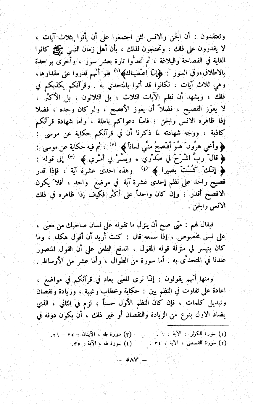 عليه السلام فأخبرت فقال له اقرأ فقرأ تلك القراءة، فقال النبي عليه السلام: هكذا نزلت، ثم قال لي اقرأ فقرأت فقال هكذا نزلت، ثم قال لي إن هذا القرآن نزل على سبعة أحرف " وأثوب محمل يحمل عليه قوله عليه السلام " على سبعة أحرف " ما حام حوله الإمام عبد الله بن مسلم بن قتيبة الهمذاني قدس الله روحه من أن المراد بسبعة الأحرف سبعة أنحاء من الاعتبار متفرقة في القرآن وحق تلك الأنحاء عندي أن ترد على اللفظ والمعنى دون صورة الكتابة لما أن النبي عليه السلام كان أميا ما عرف الكتابة ولا صور الكلم فيتأتى منه اعتبار صورتها راجعا على إثبات كلمة وإسقاطها وأنه نوعان: أحدهما أن لا يتفاوت المعنى مثل وما عملت أيديهم في موضع وما عملته لاستدعاء الموصول الراجع. وثانيهما أن يتفاوت مثل قراءة بعض أن الساعة آتية أكاد أخفيها من نفسي، وإما أن يكون راجعا على تغيير نفس الكلمة وأنه ثلاثة أنواع: أحدها أن يتغير الكلمتان، والمعنى واحد مثل ويأمرون الناس بالبخل وبالبخل برأس أخيه وبرأس وفنطرة على ميسرة وميسرة ومثل إن كانت الأزقية واحدة في موضع الأصيحة. وثانيها أن تتغير الكلمتان ويتضاد المعنى مثل إن الساعة آتية أكاد أخفيها بضم الهمزة بمعنى أكتمها وأخفيها بفتح الهمزة بمعنى أظهرها.