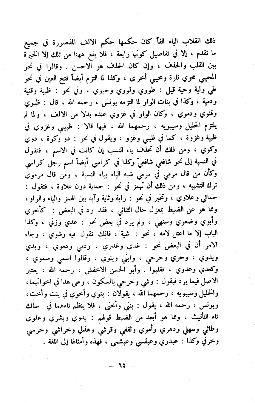 مختص بالذي آخره صحيح غير همزة وما قبله متحرك والرفع وهو أن تروم في اسكانك الآخر قدرا من التحريك والإسكان الصريح وهو على نوعين إسكان بإشمام وهو ضم الشفتين بعد الإسكان وإنه مختص بالمرفوع وبغير إشمام والأصل في سكون الوقف أن لا يعتد به لكونه عارضا فلا يحتفل باجتماع الساكنين في نحو بكر وعمرو وغلام وكتاب ثم من العرب من يحتفل به فيحول حركة الآخر ضمة كانت أو كسرة دون الفتحة التي هي لخفتها كلا حركة ولعدم استمرار المحتفل به معها كقولهم بكرا وعمراً هذا إذا لم يكن الآخرة همزة على ما قبله إذا كان صحيحا ساكنا كنحو مررت ببكر وجاءني بكر وكذا ضربته ولم أضربه، وأما إذا كان همزة حولها أية كانت بعلة التخفيف أو تمهيد له كنحو الخبو والردو والبطو، والخبى والردى والبطى والخبا والردا والبطا على هذا الوجه إلا قوما من تميم فهم يتفادون من أن يقولوا هذا الردو ومن البطى فيفرون على الاتباع قائلين هذا الرديء ومن البطؤ، ومن العرب من يعامل ما يتحرك ما قبل همزته كالكلا بمجرد علة التخفيف معاملة ما يسكن ما قبل همزته فيقول الكلو والكلى والكلا والحجازيون في قولهم الكلا بالألف في الأحوال الثلاث وأكموا بالواو فيها وكذا في قولهم أهني بالياء عاملون بسكون الوقف معاملة سكون همزة رأس ولؤم وبئر فاعلم وللوقف وراء هذا ما يتلى عليك فاستمع وذلك قلب تاء التأنيث هاء كنحو ضاربه إلا عند بعض يقولون ضاربت وهم قليل واستدعاء هاء فيما هو على حرف واحد كنحو قه وره ونحو مجيء مه ومثل مه في مجيء م جئت ومثل م أنت على الوجوب، وأما في نحو علام وفيم وقوى الاتصال بما قبله وفيما حذف آخر المعتل من الغابر ومثال الأمر فعلى الجواز لك أن تسكن وأن تلحق الهاء وحذف التنوين إذا لم يكن ما قبله مفتوحا نحو جاءني زيد ومررت بزيد، وكذا قاض عند سيبويه وهو الأكثر أو قاضي عند الأخفش وقلبه ألفا إذا كان مفتوحا نحو رأيت وقاضيا