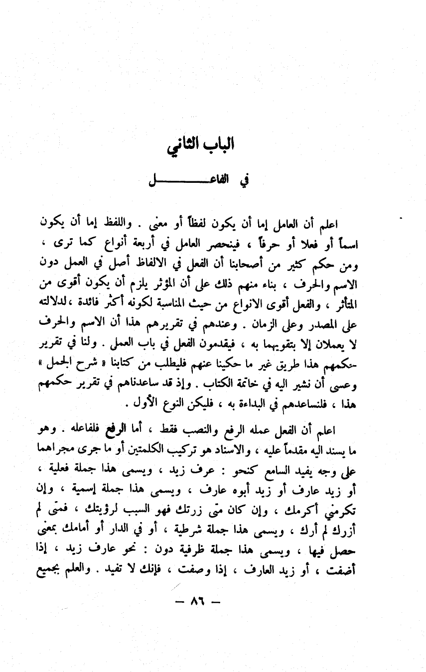 جملة اسمية أن تكون مع الواو عند الأكثر وإذا كانت فعلية والفعل مثبت ماضيا أو مضارعا أن يكون بدون الواو. وأما في المنفي فقد جاء الأمران ويلزم الماضي قد ظاهره أو مقدرة، وفي هذا الباب كلام يأتيك في علم المعاني وأمرها في جواز إضمار عاملها لازم وغير لازم على نحو أمر المفعول به. وسادسها بالتمييز، وهو رفع الإبهام في الإسناد أو في أحد طرفيه بالنص على ما يراد هناك من بين ما يحتمل كنحو طاب زيد نفسا وامتلأ الإناء ماء " وفجرنا الأرض عيونا "، والغالب عليه الإفراد لكن جمعه غير مستهجن، ومن شأنه عندنا لزوم التنكير ومن علاماته صحة اقتران من به.