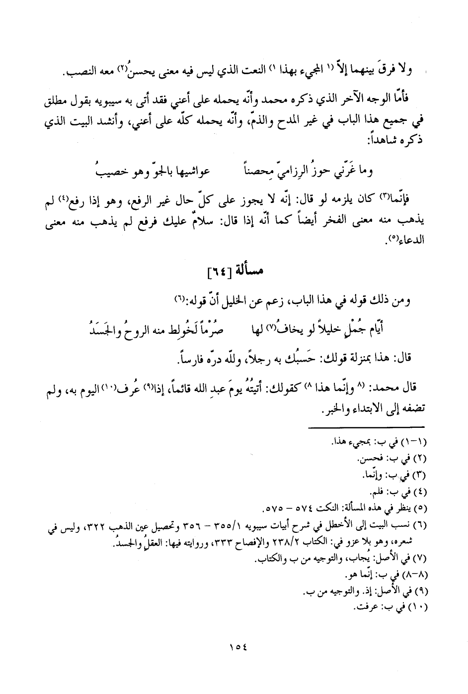 ومن ذلك قوله في هذا الباب، زعم عن الخليل أن قوله: