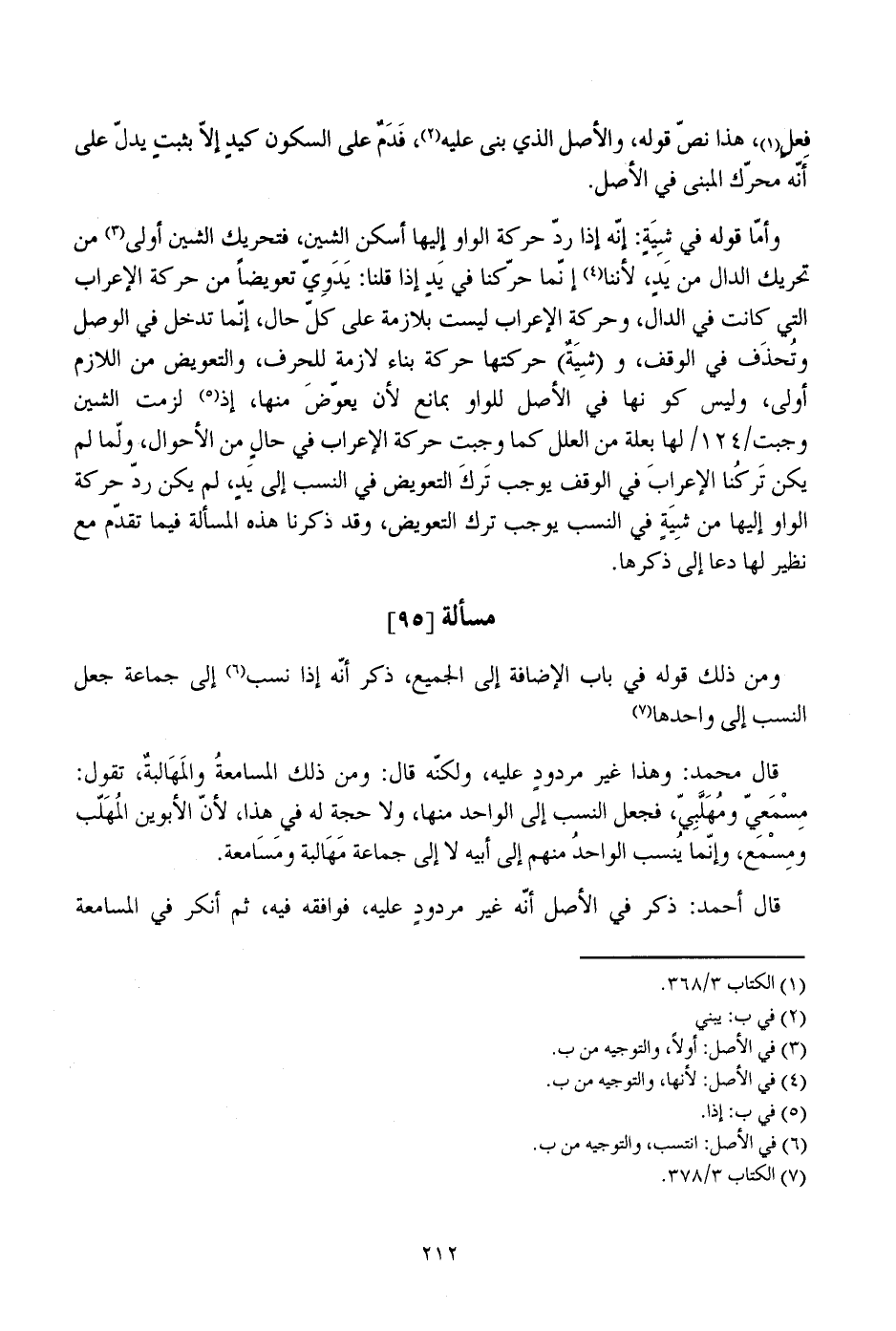 قال محمد: وهذا غير مردود عليه، ولكنه قال: ومن ذلك المسامعة والمهالبة، تقول: مسمعي ومهلبي، فجعل النسب إلى الواحد منها، ولا حجة له في هذا، لأن الأبوين المعلب ومسمع، وإنما ينسب الواحد منهم إلى أبيه لا إلى جماعة مهالبة ومسامعة.
