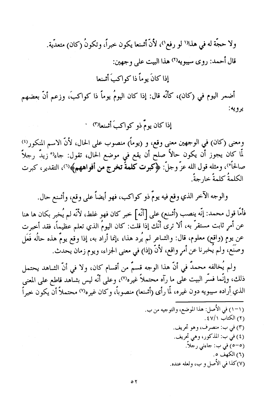 ولم يخالفه محمد في أن هذا الوجه قسم من أقسام كان، ولا في أن الشاهد يحتمل ذلك، وإنما فسر البيت على ما رآه محتملا غيره، وعلى أنه ليس بشاهد قاطع على المعنى الذي أراده سيبويه دون غيره، لما رأى (أشنعا) منصوبا، وكان غيره محتملا أن يكون خبرا
