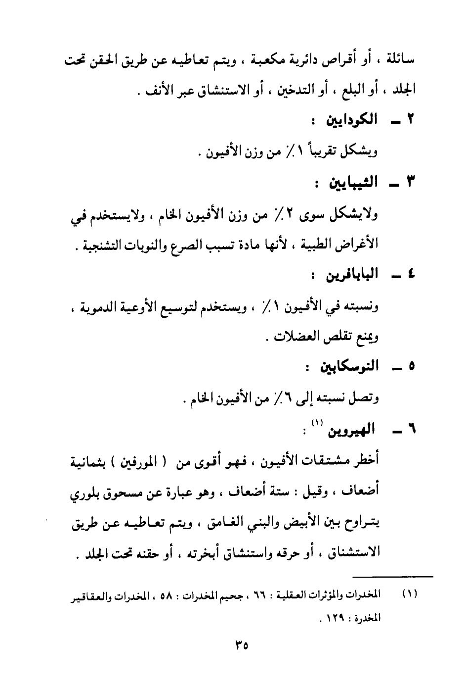 2- الكودايين: ويشكل تقريبا 10% من وزن الأفيون،.