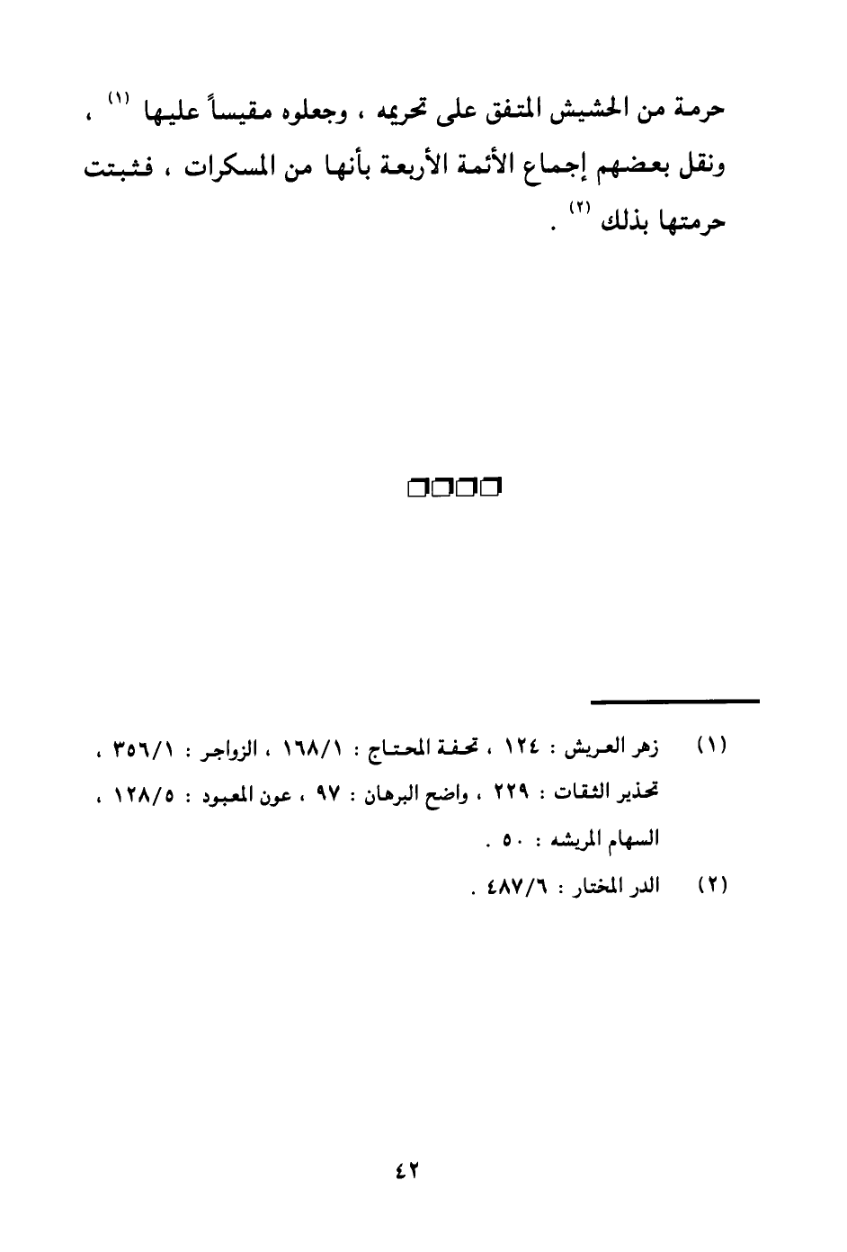 1 زهر العريش: 124، تحفة المحتاج: 1/168، الزواجر: 1/356، تحذير الثقات: 229، واضح البرهان: 97، عون المعبود: 5/128 السهام المريشه: 50.
