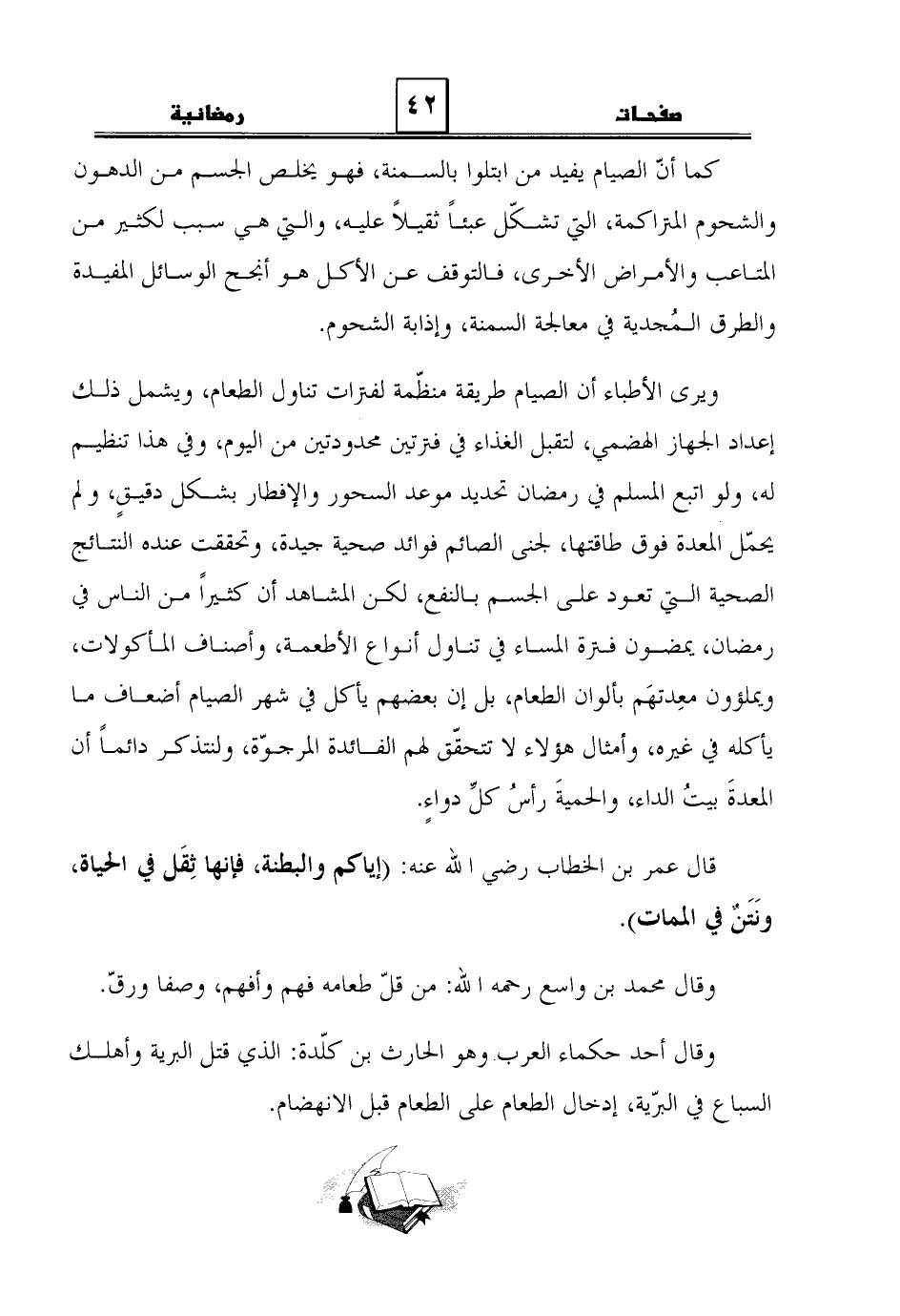 قال عمر بن الخطاب رضي الله عنه: "إياكم والبطنة، فإنها ثقل في الحياة، ونتن في الممات".