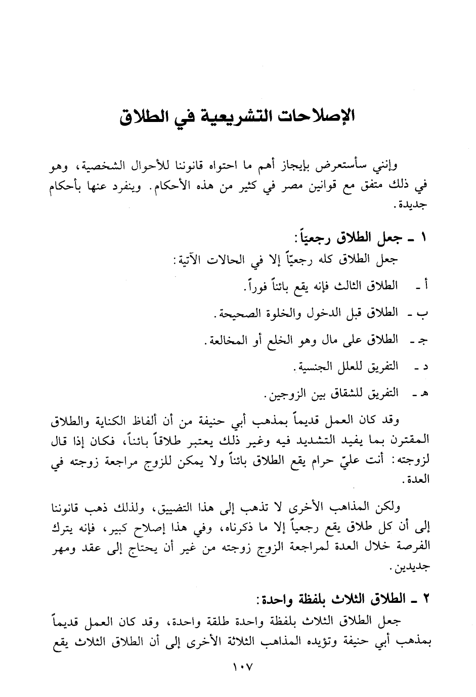 في الأحوال الشخصية - في الطلاق - الاصلاحات التشريعية في الطلاق