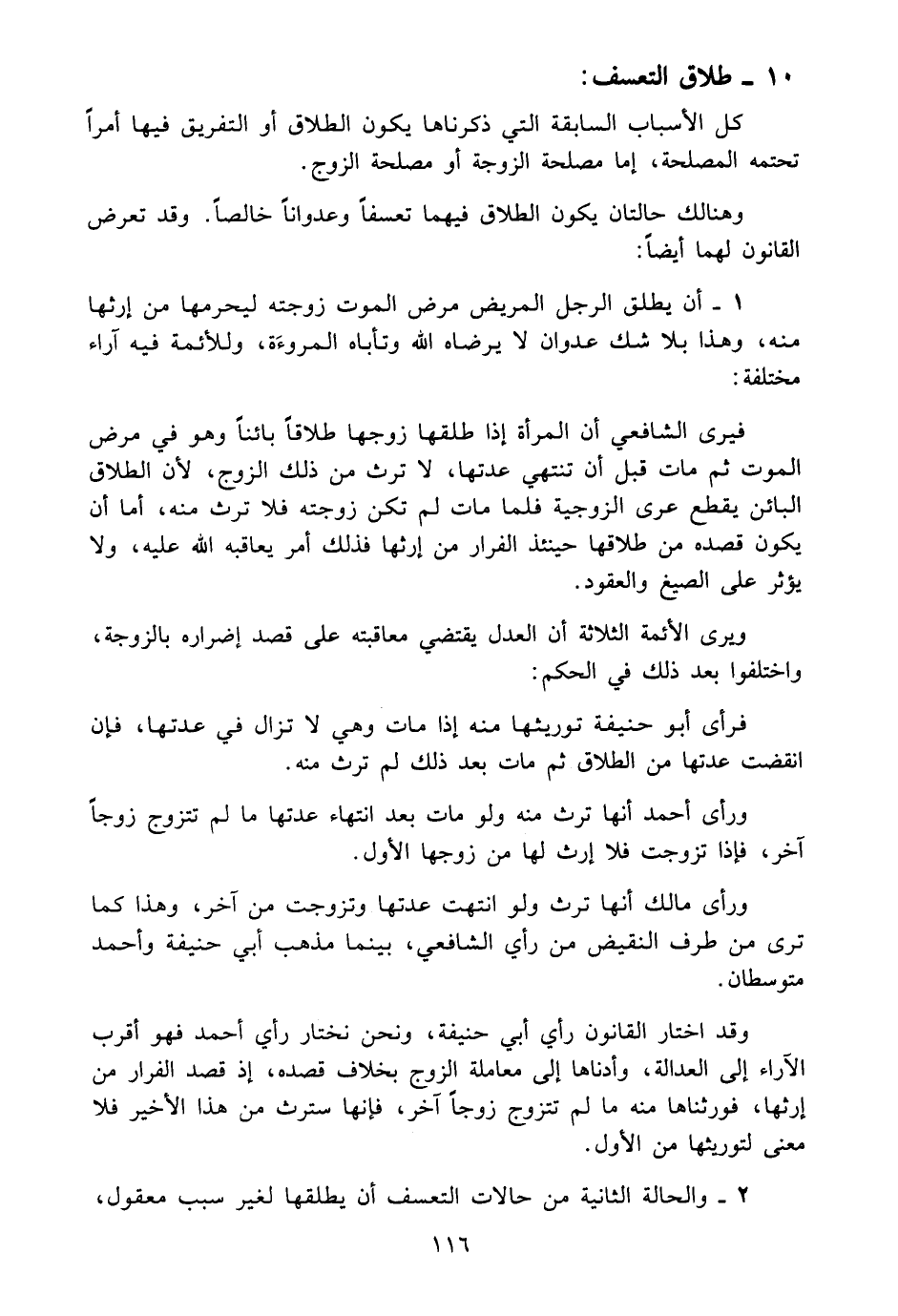 وهنالك حالتان يكون الطلاق فيهما تعسفاً وعدواناً خالصاً. وقد تعرض القانون لهما أيضاً: