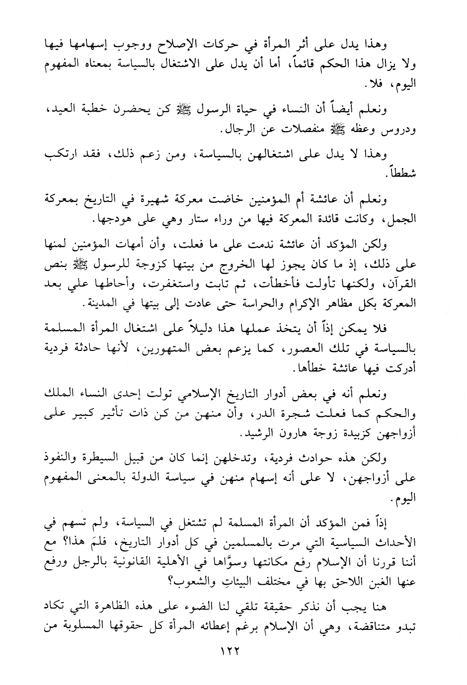 وهذا لا يدل على اشتغالهن بالسياسة، ومن زعم ذلك، فقد ارتكب شططاً.