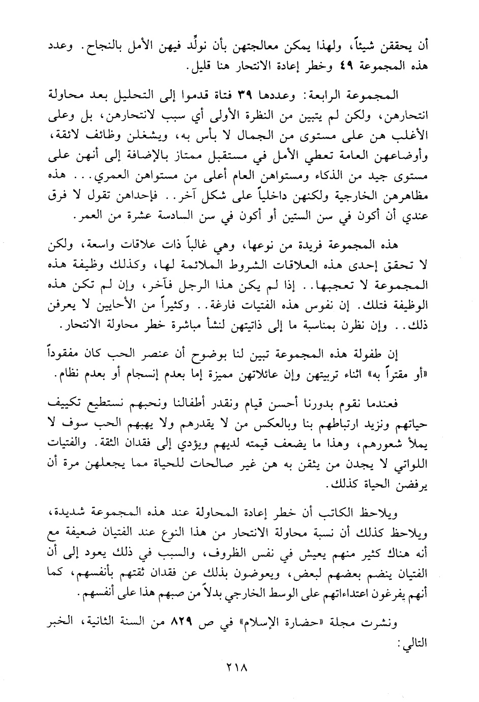 أن يحققن شيئاً: ولهذا يمكن معالجتهن بأن نولد فيهن الأمل بالنجاح. وعدد هذه المجموعة 49 وخطر اعادة الانتحار هنا قليل.
