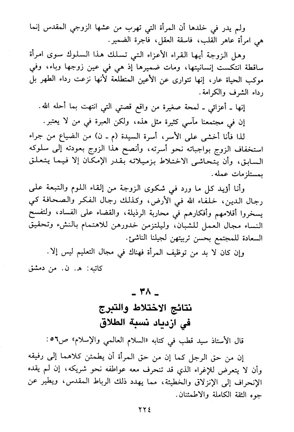 الملاحق - نتائج الاختلاط والتبرج في ازدياد نسبة الطلاق