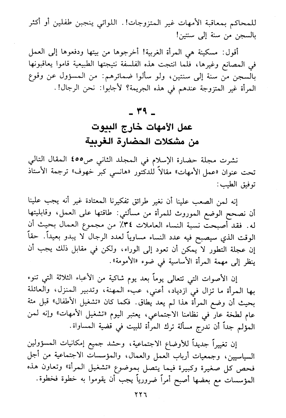 الملاحق - عمل الأمهات خارج البيوت من مشكلات الحضارة الغربية