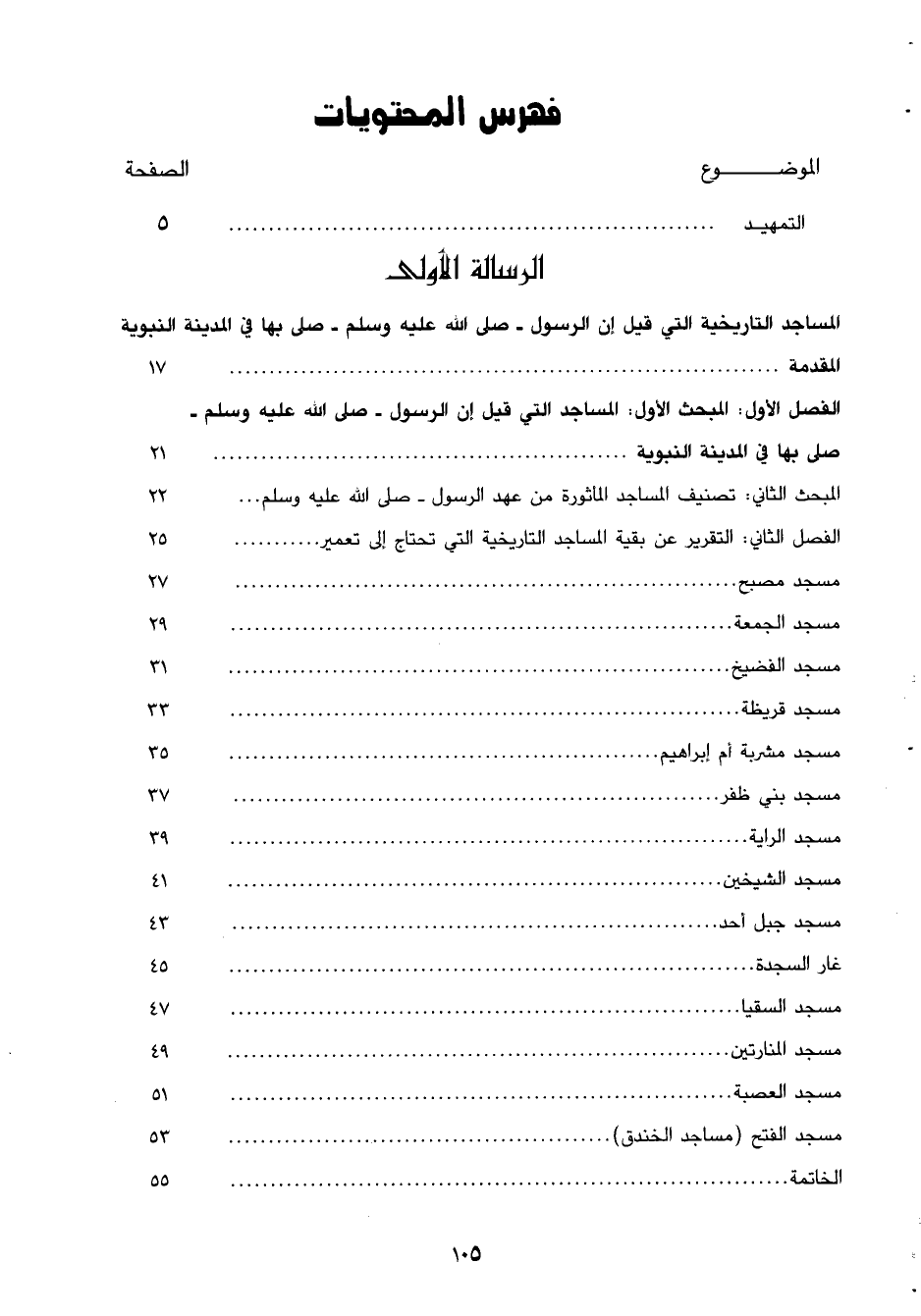 المبحث الأول: المساجد التي قيل إن الرسول - صلى الله عليه وسلم - صلى بها في المدينة النبوية ............................................................... 21