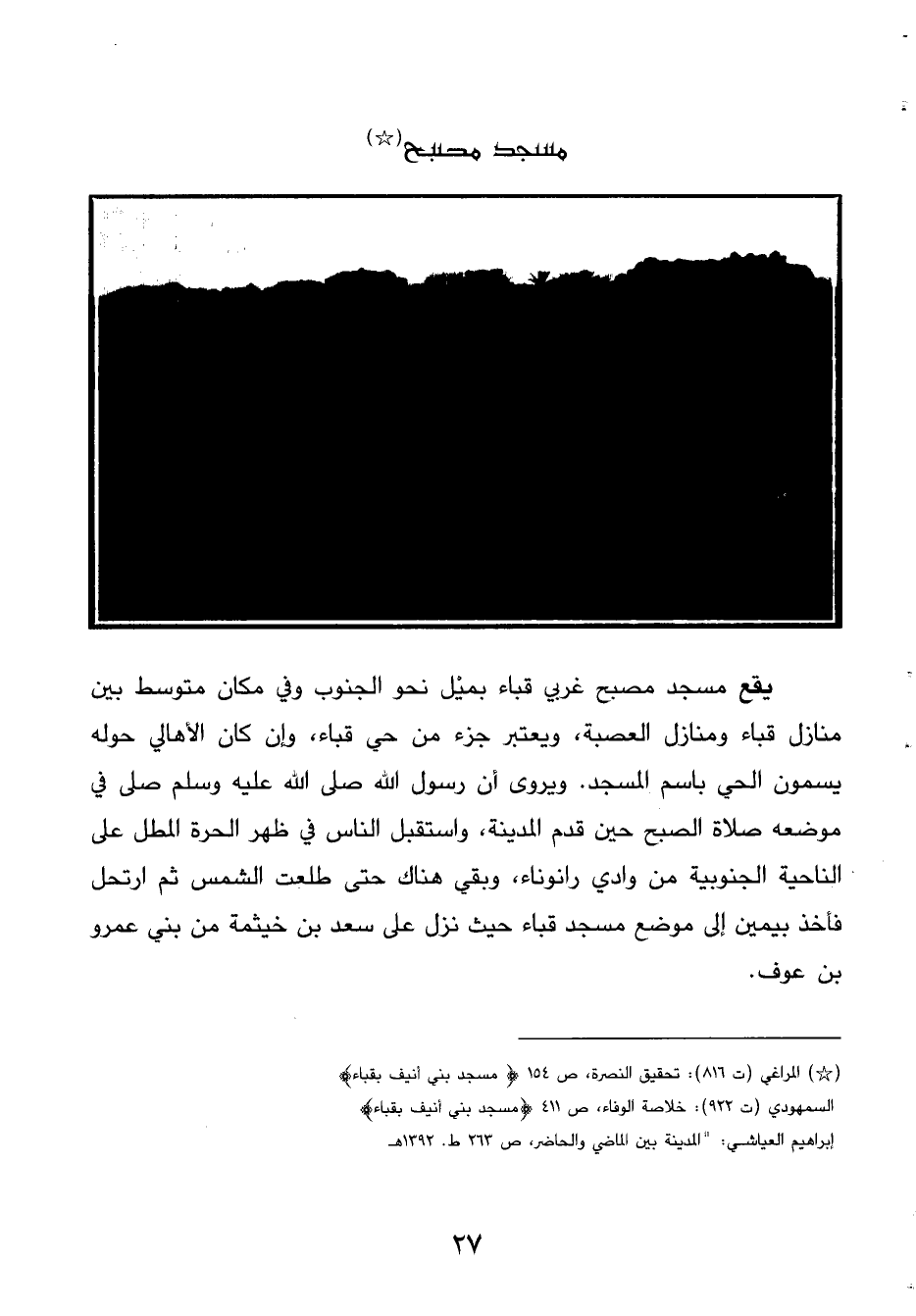 (*) المراغي (ت816): تحقيق النصرة، ص154 (مسجد بني أنيف بقباء) السمهودي (ت 922): خلاصة الوفاء، ص 411 (مسجد بني أنيف بقباء) إبراهيم العياشي: ((المدينة بين الماضي والحاضر، ص 263 ط. 1392هـ.