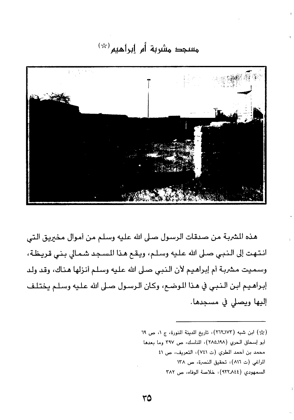 (*) ابن شبه (173 - 262): تاريخ المدينة المنورة، ج1، ص69 أبو إسحاق الحربي (198 - 285): المناسك، ص397 وما بعدها محمد بن أحمد المطري (ت741): التعريف، ص41 المراغي (ت816): تحقيق النصرة، ص138 السمهودي (844 - 922): خلاصة الوفاء، ص382