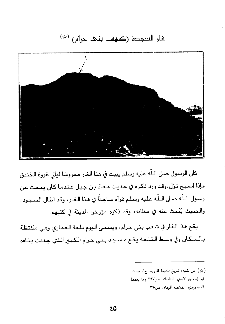 (*) ابن شبه: تاريخ المدينة المنورة، ج1، ص 65 أبو إسحاق الأيوبي: المناسك، ص 397 وما بعدها السمهودي: خلاصة الوفاء، ص 390