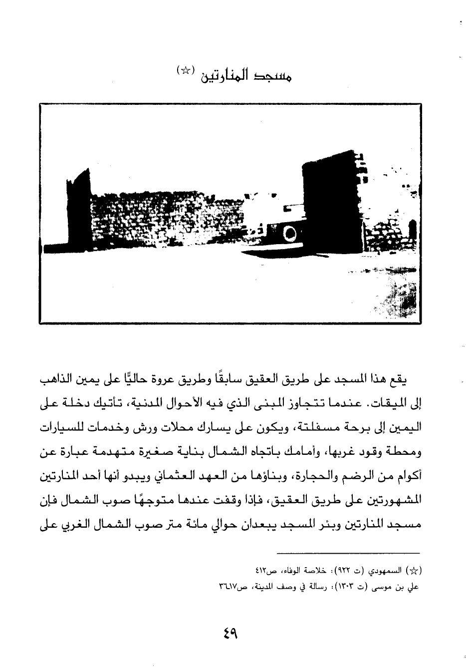 (*) السمهودي (ت 922): خلاصة الوفاء، ص 412 علي بن موسى (ت 1303): رسالة في وصف المدينة، ص 17 - 36