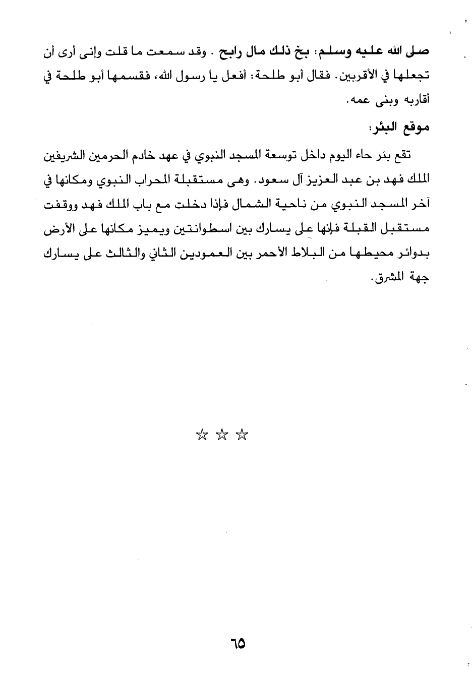 65…صلى الله عليه وسلم: بخ ذلك مال رابح. وقد سمعت ما قلت وإنى أرى أن تجعلها في الأقربين. فقال أبو طلحة: أفعل يا رسول الله، فقسمها أبو طلحة في أقاربه وبنى عمه.