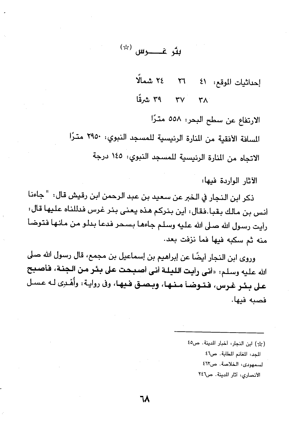 (*) ابن النجار: أخبار المدينة. ص 45 المجد: المغانم المطابة. ص 46 لسمهودى: الخلاصة. ص 462 الأنصاري: آثار المدينة. ص 246