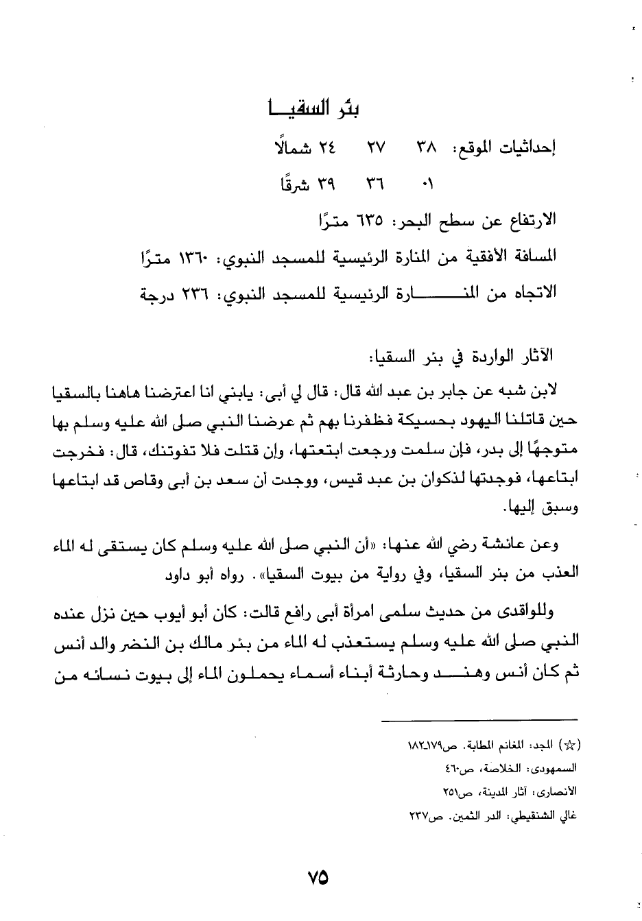 (*) المجد: المغانم المطابة. ص 179 - 182 السمهودى: الخلاصة، ص 460 الأنصارى: آثار المدينة، ص 251 غالي الشنقيطي: الدر الثمين. ص 237