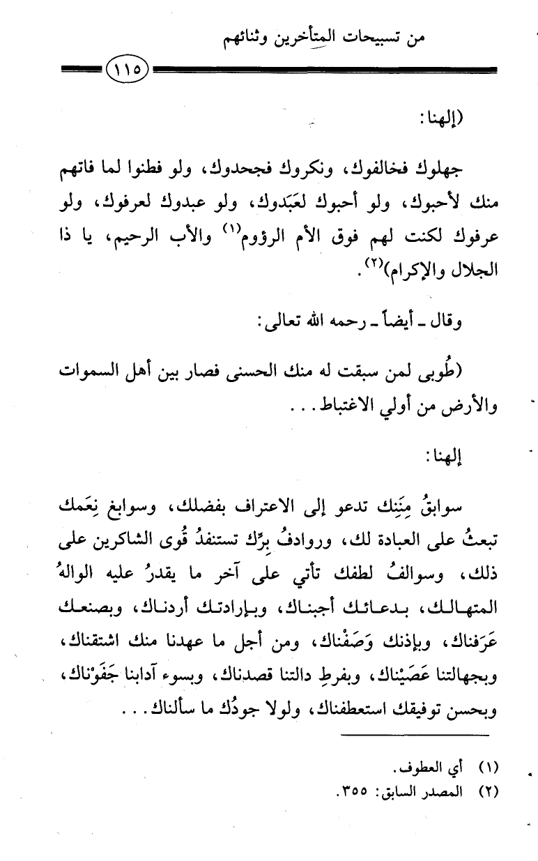 (إلهنا: جهلوك فخالفوك، ونكروك فجحدوك، ولو فطنوا لما فاتهم منك لأحبوك، ولو أحبوك لعَبَدوك، ولو عبدوك لعرفوك، ولو عرفوك لكنت لهم فوق الأم الرؤوم (¬1) والأب الرحيم، يا ذا الجلال والإكرام) (¬2).