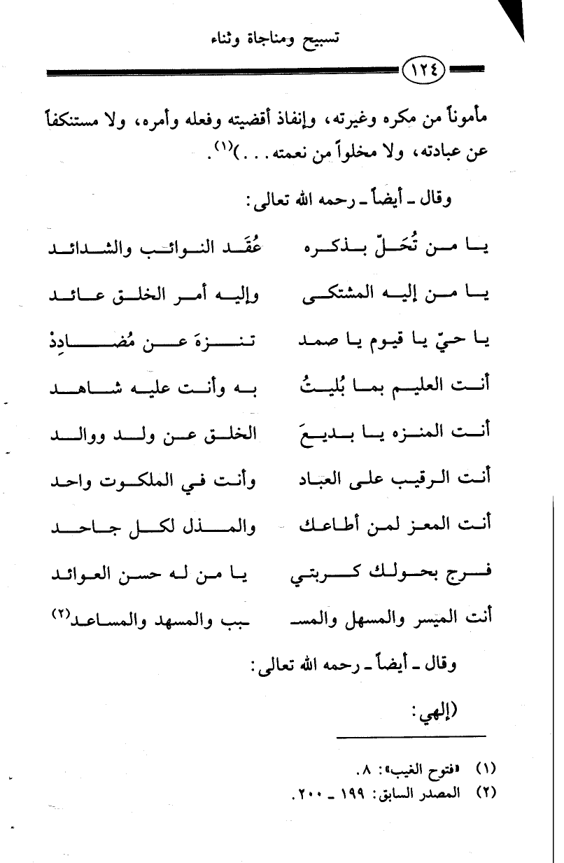أنت المنزه يابديعَ ... الخلق عن ولد ووالد