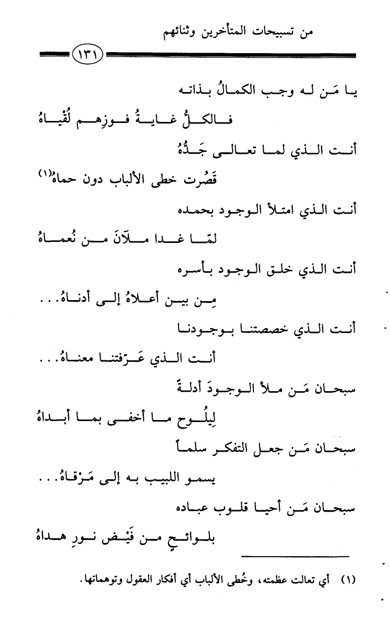 سبحان مَن جعل التفكر سلماً ... يسمو اللبيب به إلى مَرْقاهُ ...