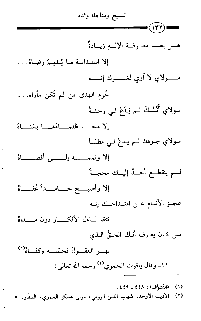 هل بعد معرفة الإلهِ زيادةٌ ... إلا استدامة ما يُديمُ رضاهُ ...