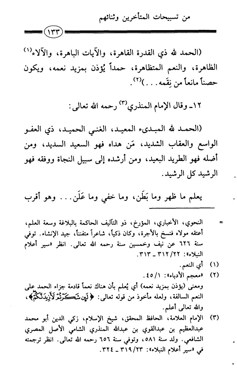 12 - وقال الإمام المنذري (¬3) رحمه الله تعالى: