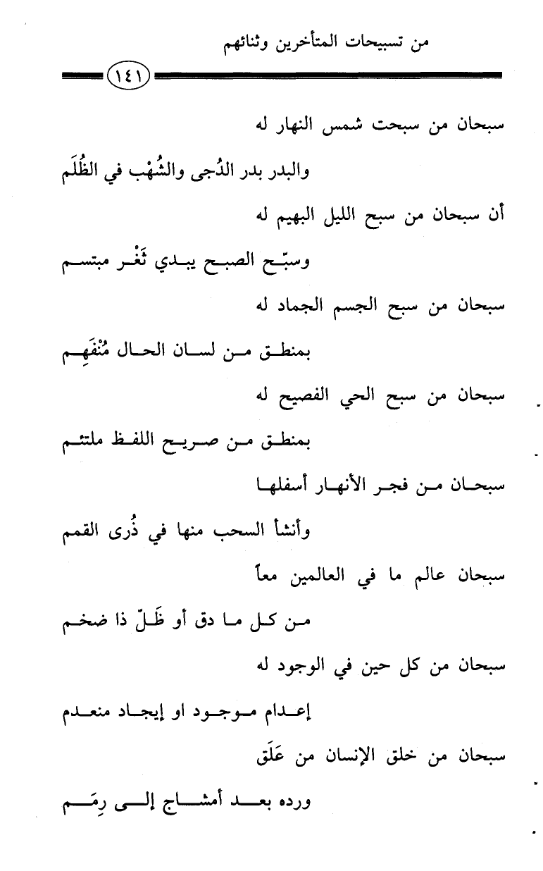سبحان من سبحت شمس النهار له ... والبدر بدرالدُجى والشُهْب في الظُلَم