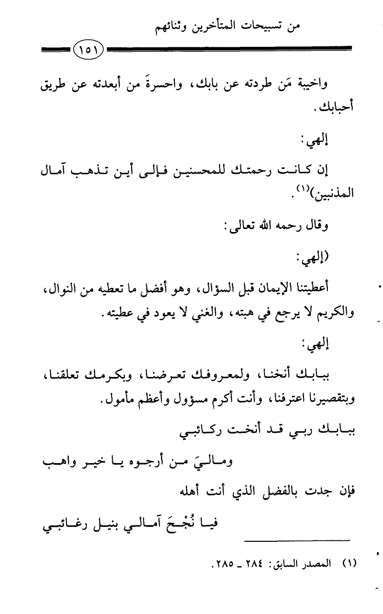 إن كانت رحمتك للمحسنين فإلى أين تذهب آمال المذنبين) (¬1).