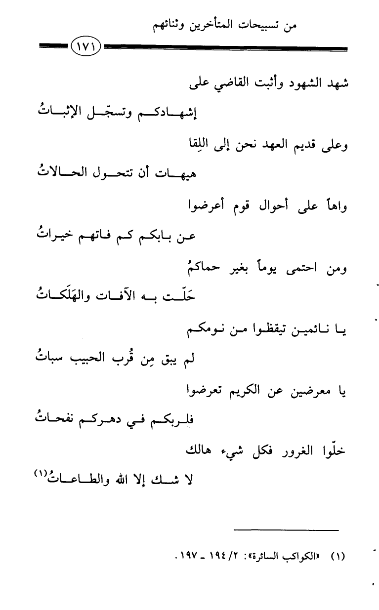 خلّوا الغرور فكل شيء هالك ... لا شك إلا الله والطاعاتُ (¬1)