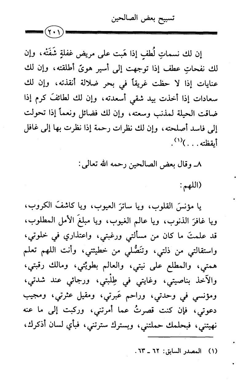 8 - وقال بعض الصالحين رحمه الله تعالى: