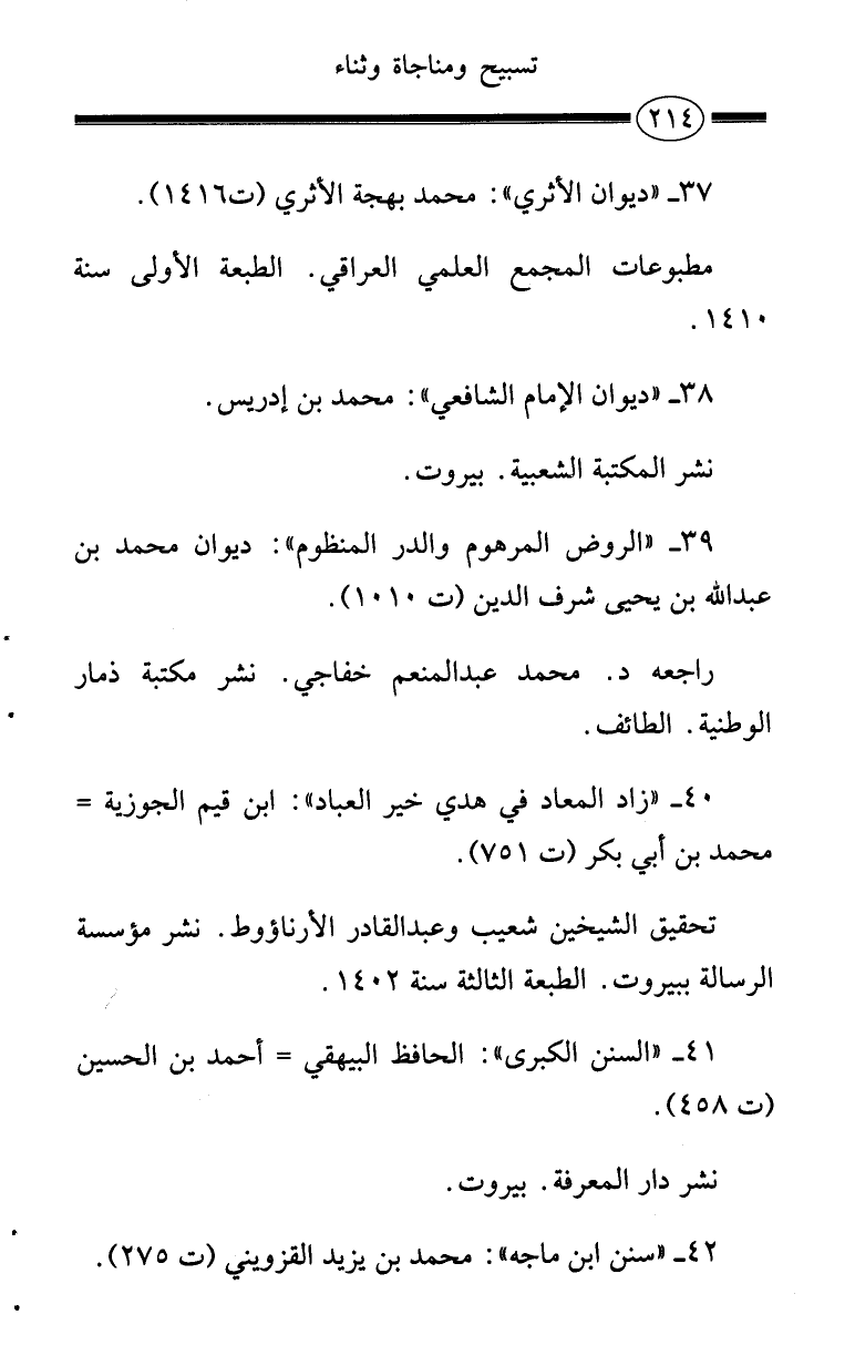 40 ـ ((زاد المعاد في هدي خير العباد)): ابن قيم الجوزية = محمد بن أبي بكر (ت 751).