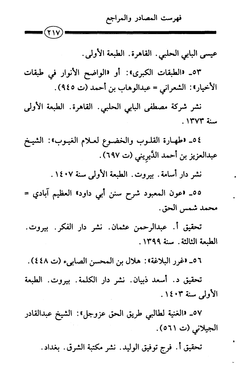 53 ـ ((الطبقات الكبرى)): أو ((الواضح الأنوار في طبقات الأخيار)): الشعراني = عبد الوهاب بن أحمد (ت 945).