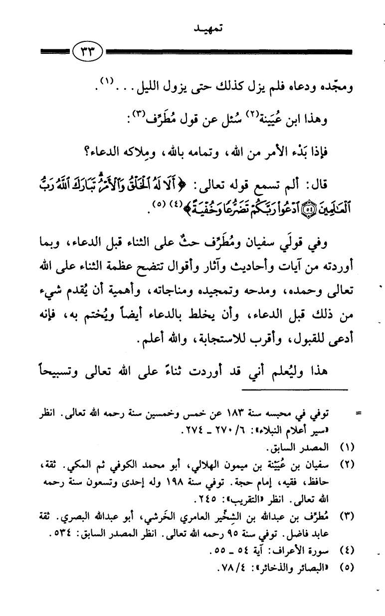 وفي قولَي سفيان ومُطَرِّف حثٌ على الثناء قبل الدعاء، وبما أوردته من آيات وأحاديث وآثار وأقوال تتضح عظمة الثناء على الله تعالى وحمده، ومدحه وتمجيده ومناجاته، وأهمية أن يُقدم شيء من ذلك قبل الدعاء، وأن يخلط بالدعاء أيضاً ويُختم به، فإنه أدعى للقبول، وأقرب للاستجابة، والله أعلم.
