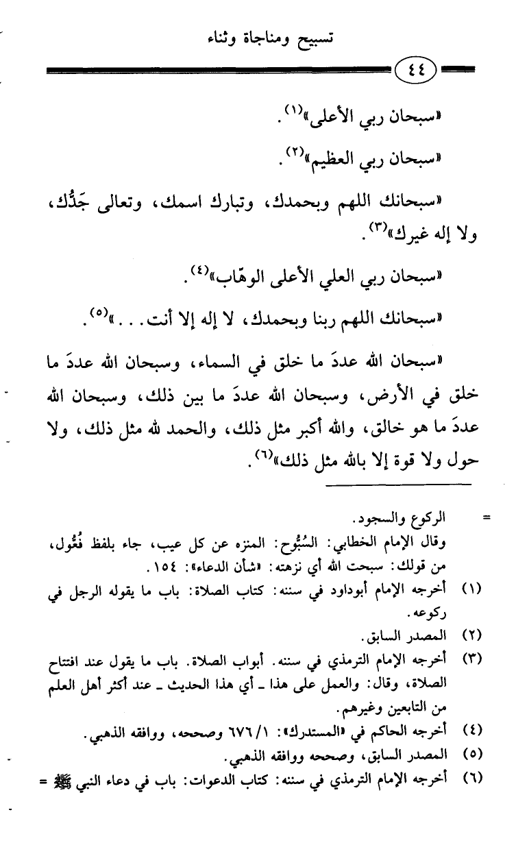 (¬1) أخرجه الإمام أبو داود في سننه: كتاب الصلاة. باب ما يقوله الرجل في ركوعه.