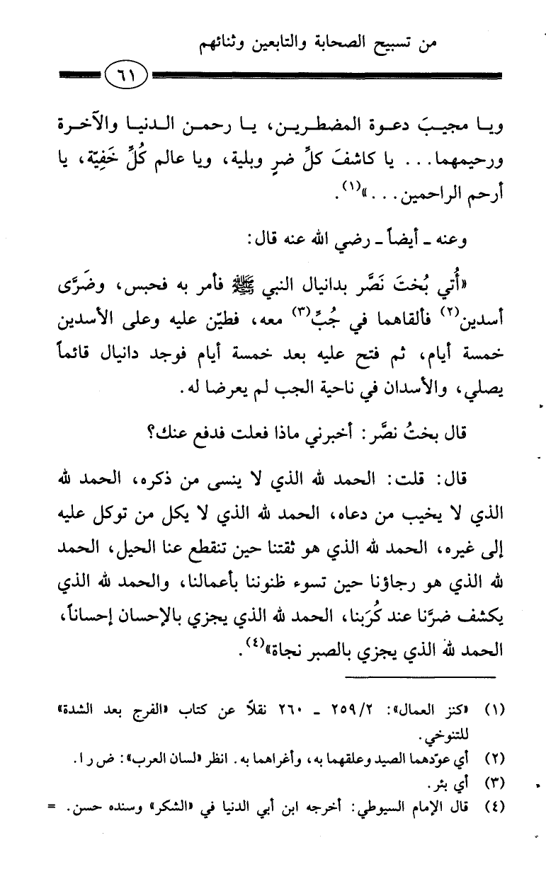 (¬4) قال الإمام السيوطي: أخرجه ابن أبي الدنيا في ((الشكر)) وسنده حسن. انظر ((كنز العمال)): 2/ 655.