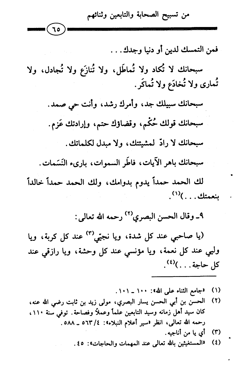 سبحانك سبيلك جد، وأمرك رشد، وأنت حي صمد.